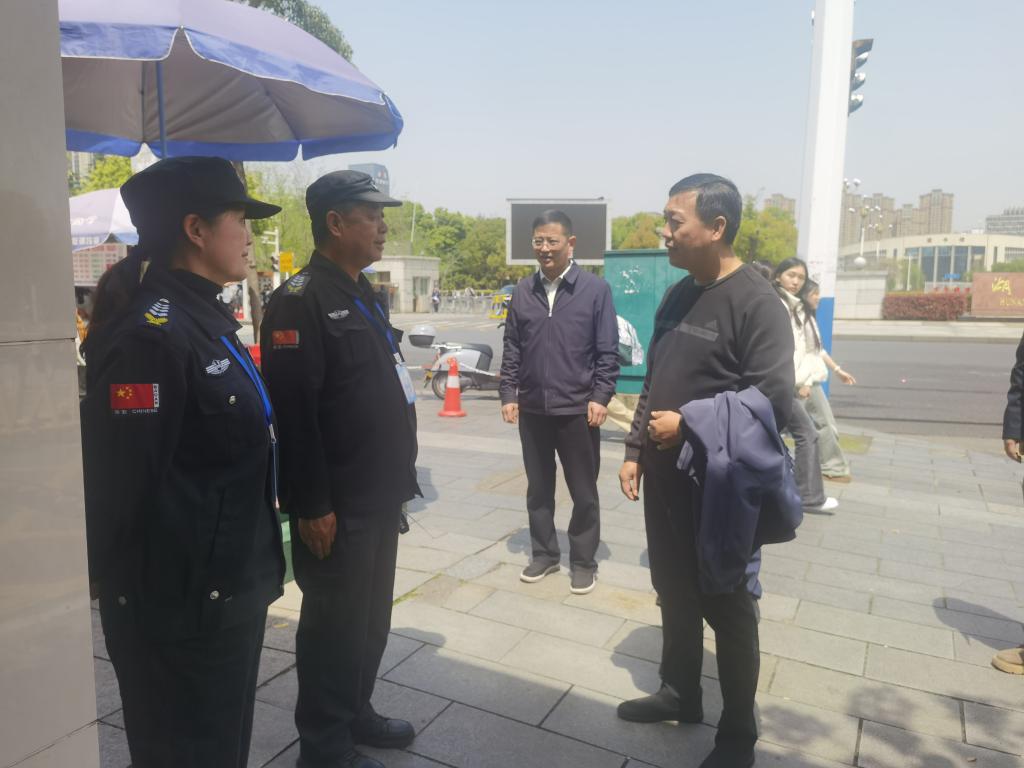 党委书记刘宇文(右1)一行在滨湖路校门门岗检查工作