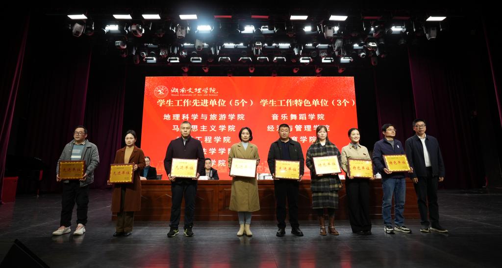 会上,宣传统战部常务副部长刘灿宣读了《关于表彰2025年度学生工作先进单位、优秀学生工作者及优秀辅导员的决定》《关于表彰2024-2025学年湖南文理学院优秀班主任的决定》。与会领导一一为学生工作先进单位、学生工作特色单位、优秀学生工作者、优秀辅导员、优秀班主任颁奖。黄倩辉、袁宇分别作为优秀辅导员代表、优秀班主任代表发言。芙蓉学院肖江涛老师在会上进行了考研指导经验分享。