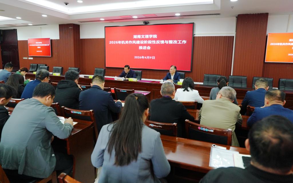 本网讯(文字 袁勇军 图片 易姣)4月9日上午,学校2026年机关作风建设阶段性反馈暨整改工作推进会在逸夫楼B603召开。学校党委书记刘宇文、党委副书记李红革出席会议。各机关教辅单位主要负责人,财务处、后勤基建处、保卫部、教务处等部门的科级以上干部和教师、学生代表参加会议。李红革主持会议。