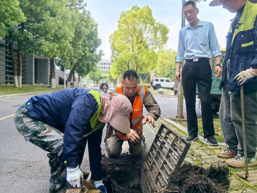 在下水井清理现场,工作人员克服井深作业难度,徒手清理井内淤积物与各类垃圾,确保不放过任何一处堵塞点位。经过细致作业,累计疏通校园重点区域下水井120余处,清理排水沟渠200余米,有效保障了校园排水系统畅通,为应对雨季汛期消除了安全隐患。在“除四害”工作现场,工作人员严格遵循消杀规范,对食堂、学生宿舍等人员密集场所实施全方位病媒生物防治。行动期间,精准投放鼠药160余处、蟑螂药40余处,发放粘鼠板16块,高效喷洒灭蚊药剂1000余斤,并细致封堵鼠洞8处,从源头上遏制了病媒生物滋生,进一步筑牢了校园卫生健康屏障。在周边环境治理环节,全体人员齐心协力,重点对学校五食堂及部分宿舍楼周边区域进行深度清扫,彻底整治卫生死角。经过集中治理,相关区域环境面貌焕然一新。