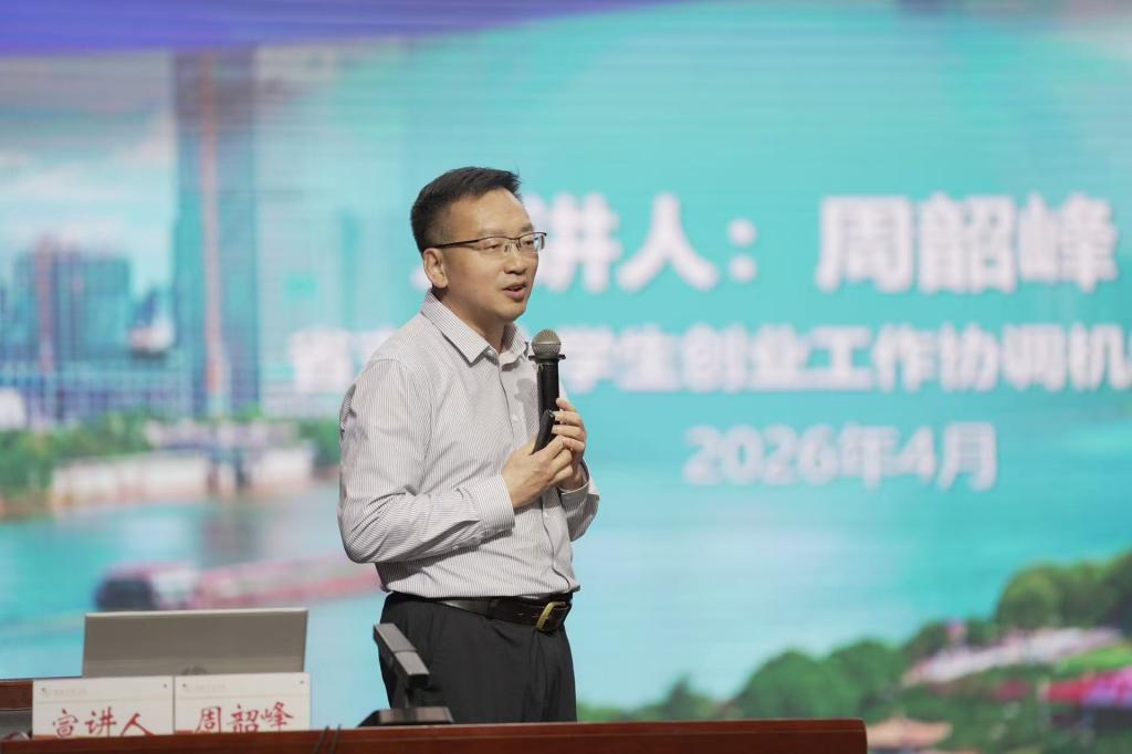 湖南省教育厅学生处处长、“校友回湘”专班主任周韶峰作报告