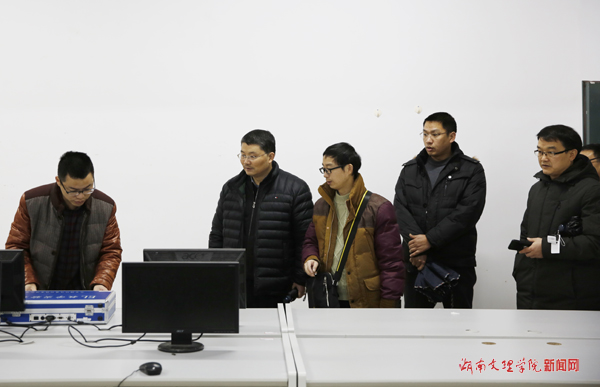 本网讯(记者 邵启湖 摄影 刘灿)1月9日上午,省教育厅检查组汤自军、向岩兵、肖瑞建一行来我校对我校实验室安全工作进行了全面检查。副校长刘春晖在逸夫楼B704会议室向检查组汇报了我校实验室安全工作情况。