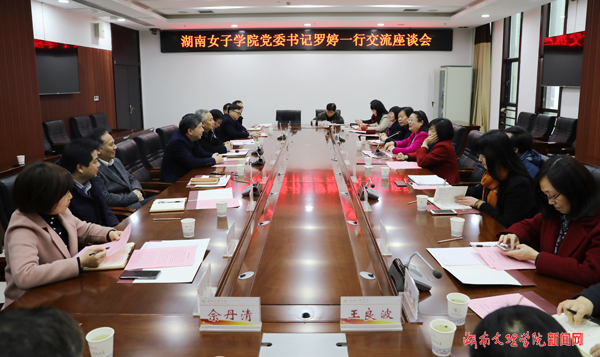 党委书记谷正气首先向湖南女子学院的女同志送上节日的祝福,同时也对罗婷一行人的来访表示热烈欢迎。谷书记简要介绍了我校从办学至今,在教学、科研、人才培养等方面的卓越成就,并就我校前段时间进行的机构改革做了详细的介绍。