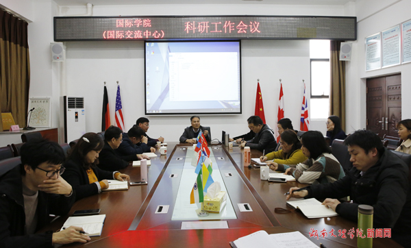 本网讯(通讯员 孙叶枫)3月12日下午,国际学院(国际交流中心)科研工作推进会议在东附楼C304举行,副校长李红革出席会议,科研院院长佘丹清,学院班子成员、教授、博士及科级以上干部参加会议。