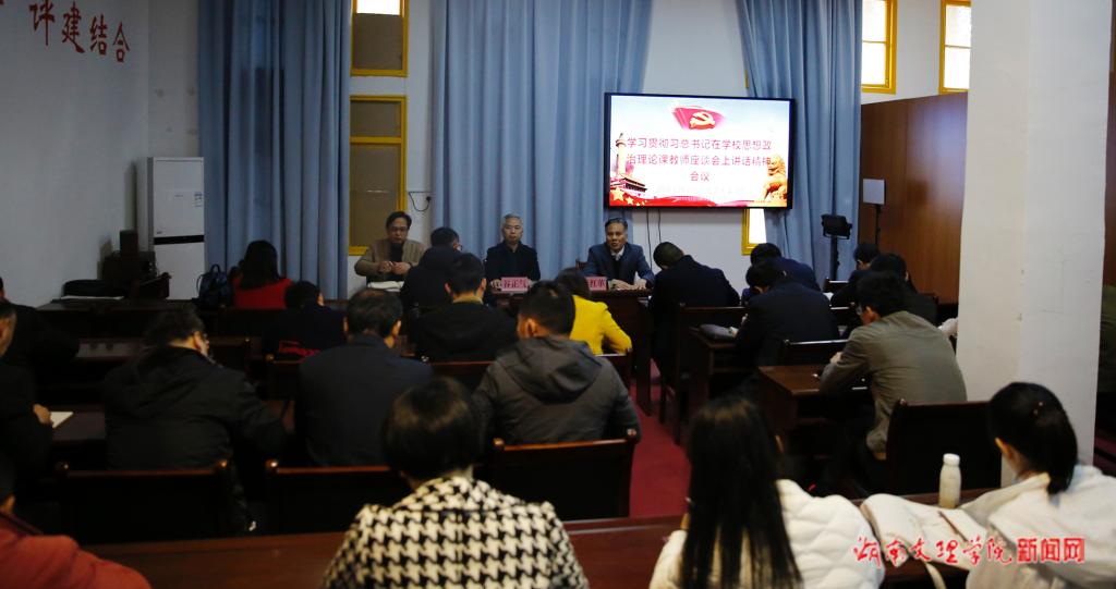本网讯(马克思主义学院 供稿)3月19日下午,我校在马克思主义学院召开专题会议,深入学习3月18日习近平总书记在全国学校思想政治理论课教师座谈会上发表的重要讲话。校党委书记谷正气,校党委委员、副校长李红革参加学习。