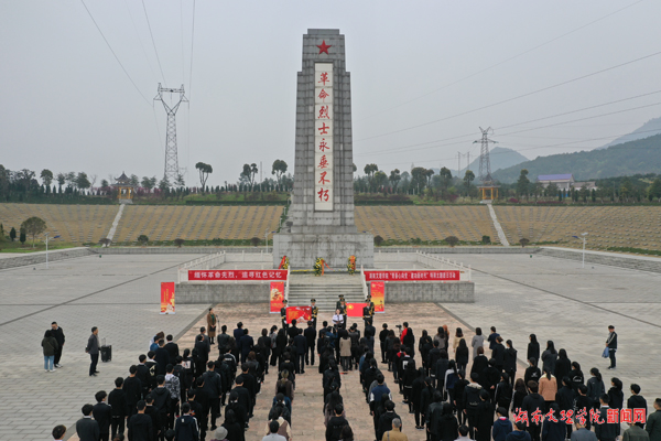 本网讯(团委 供稿)3月30日上午,我校在石门县烈士陵园开展了“青春心向党·建功新时代”特别主题团日活动。我校副校长刘春晖,共青团常德市委、共青团石门县委负责人,学校团委全体人员、马克思主义学院教师代表、各学院团总支书记以及全校100余名团员代表参加活动。