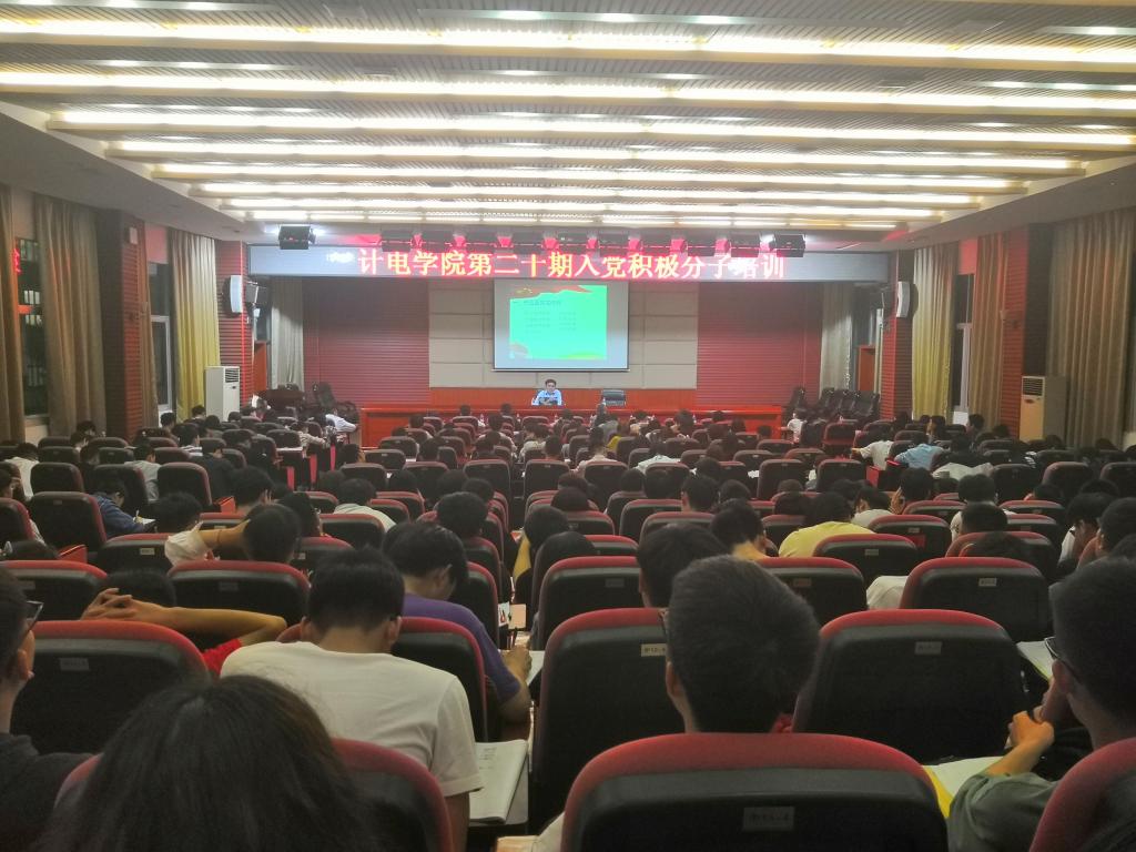 本网讯(通讯员 陈平涛)4月17日晚7点,计算机与电气工程学院第二十期入党积极分子培训班在船型楼二楼多功能报告厅举行。党委委员、副校长郭国强教授以“大学生党员的党性修养”为题给学院师生上了一堂生动党课,学院党总支书记张奋、专职组织员杨如曙,全体辅导员和入党积极分子近300人聆听了党课。