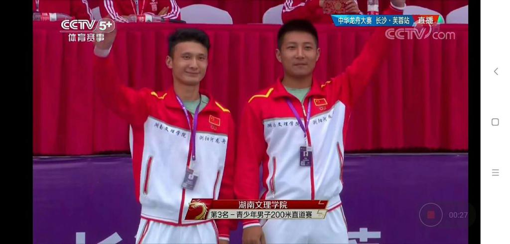 在21日的决赛中,六支参加决赛的队伍水平极为接近,预赛成绩相差不大,面对去年中华龙舟大赛年度总冠军聊城大学、上一站新科冠军热带海洋学院、老牌劲旅华中科技大学和枣庄学院等高校龙舟队,我校男子龙舟队作为湖南省唯一一支参加青少年组的队伍,力克同组强队,分别夺得200米季军龙头杯、100米第四名、500米第四名,在国内级别最高、竞技水平最高的中华龙舟大赛上再次取得历史性突破。