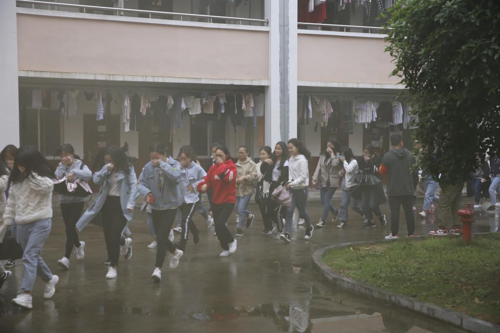 学生16舍共住有我校国际学院、数理学院、经管学院、计电学院、师范学院、生环学院等6个学院的学生940余人,国际学院留学生、外籍教师及其家属也居住其中,情况十分紧急。听到警报,相关安全人员迅速赶到现场,一边报警一边大声呼救,引导学生们从楼道有序疏散。同学们大多用湿毛巾捂紧口鼻,猫腰快速有序地朝空旷的篮球场跑去,约2分钟时间,该宿舍940余名学生、留学生及外籍教师等全部撤离到安全地带,无重大人员“伤亡”事故。