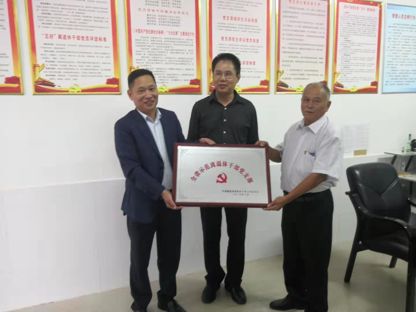 本网讯(通讯员 胡洁)10月11日下午,常德市委老干部局局务会成员、市委离退休干部工委专职副书记韩公政等一行三人前来我校芙蓉学院离退休干部党支部活动阵地,代表湖南省离退休干部工作委员会宣读了中共湖南省离退休干部工作委员会文件(湘离退委【2019】5号)《关于对第四批全省示范离退休干部党支部予以授牌的通报》,我校离退休第四党支部获此殊荣。韩公政在党员活动室给我校离退休工作处党总支书记处长陈顺清、离退休第四党支部书记李祥发进行了现场授牌。据悉,全省仅三所高校的三个离退休党支部获得此项荣誉。