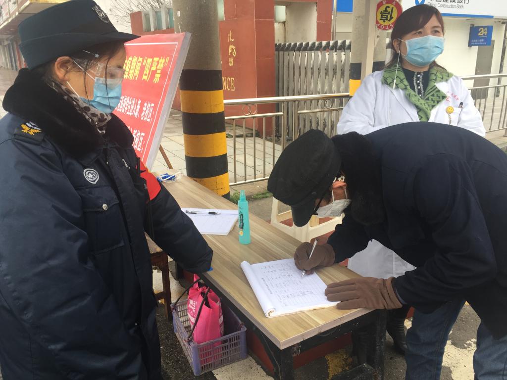 刘春晖(右二)戴军(右一)在一线检查、指导防疫工作