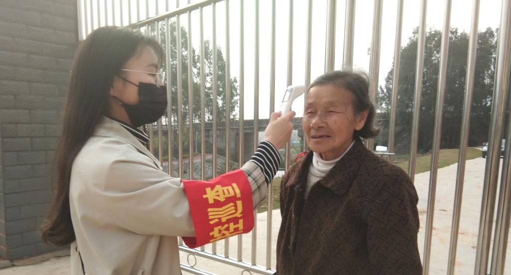 护鸟营志愿者樊露雪正在为村民测量体温