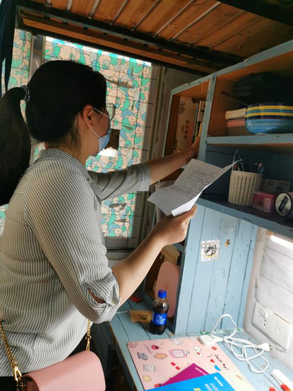 文法学院的辅导员们则通过多个渠道充分收集同学们的相关信息,深入宿舍,对照同学们的需求寻找物品,精心整理打包后将物品邮寄到学生手中。该院陈馥珺老师说:“远方的同学们,需要邮寄物品的,说一声,我们一定会办好。”