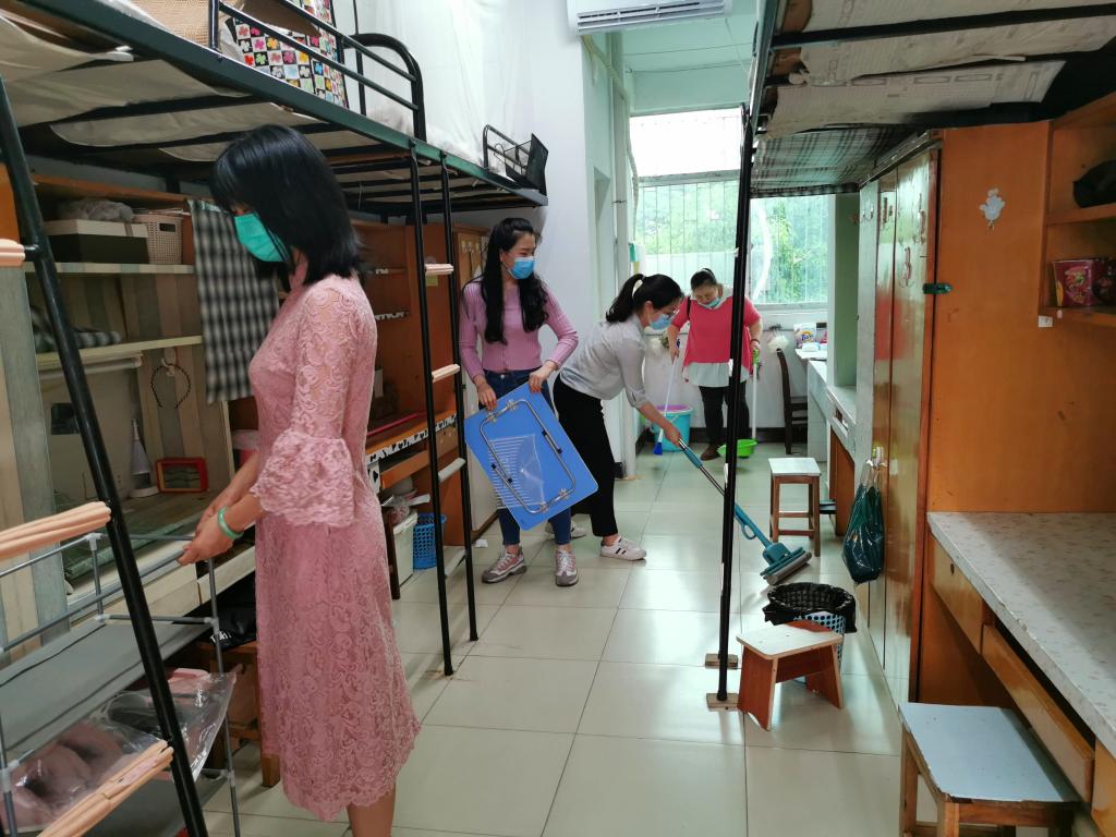 “因为疫情影响,寝室太久没有人居住,我们先用杀虫剂对宿舍进行灭虫处理,再清洁桌椅、床铺、地板,最后喷上空气清新剂、放置除味丸。”数理学院学工办主任王佳文表示:“希望毕业生经过一个特殊的假期回到学校后,能感受到学院对他们的深深挂念。”