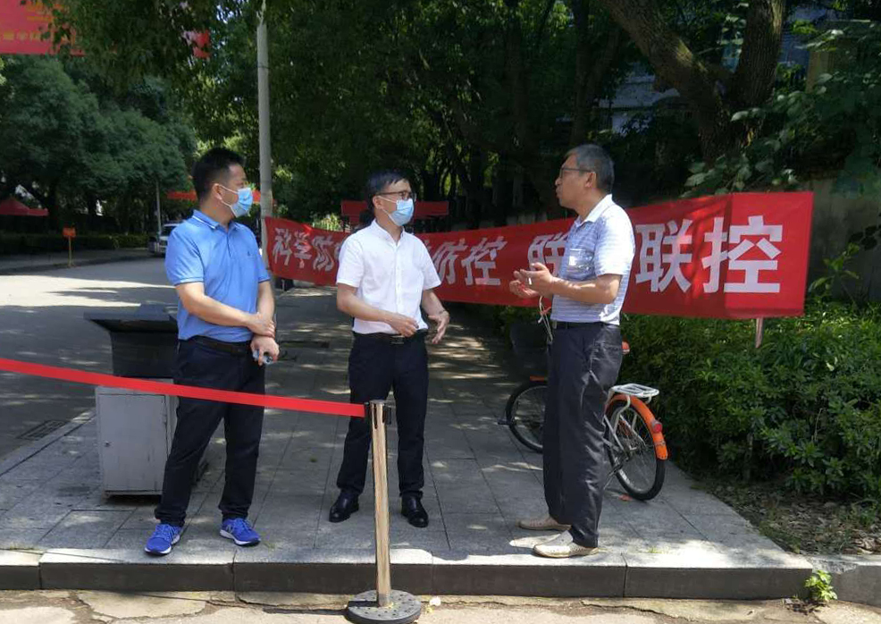 副校长刘春晖(中),党委委员、组织部部长戴军(左1)在校园巡查