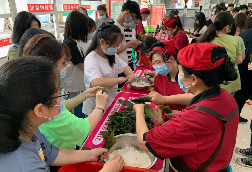 在大家的共同努力下,一个上午的时间,食堂阿姨和学生包了近2000个粽子。阿姨们把这些粽子上笼蒸熟后,端午节的清早就免费发放到千名学生手中,让学生离开家乡也能充分领会传统佳节所蕴含的历史底蕴和文化内涵。(一审 易娇 二审 杨静 三审 袁勇军)