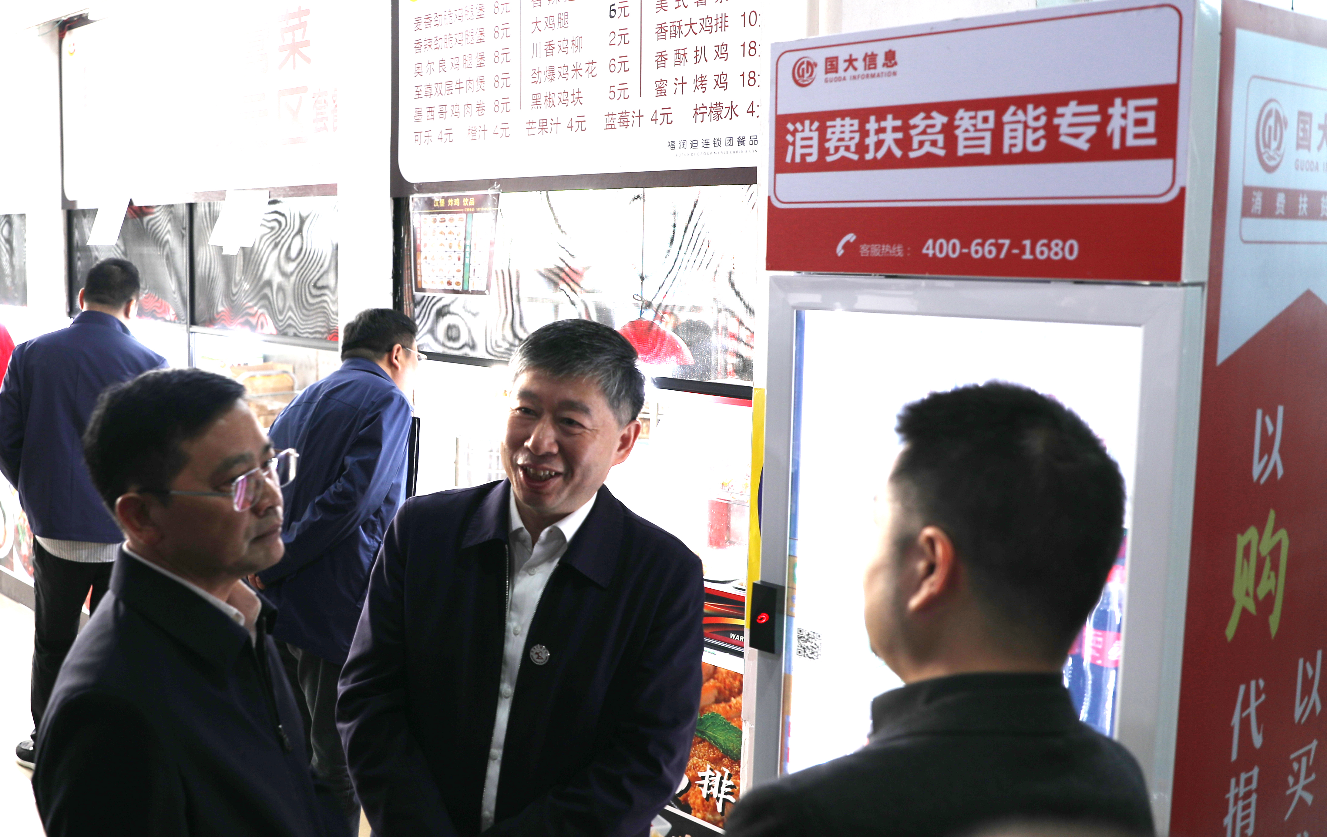 朱水平一行先后到我校一食堂、四食堂调研扶贫专柜设立经营及扶贫工作情况。他指出,在学校增设智能专柜,既方便师生,又能鼓励师生参与到爱心扶贫中。他希望学校高度重视、强力推进消费扶贫工作,必须对产品严把关口、确保质量,让消费者和贫困户双方受益。