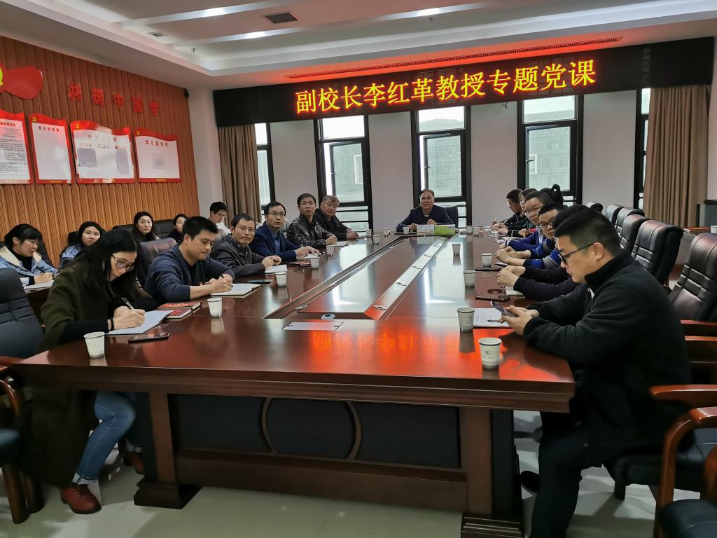 本网讯(通讯员 朱丹)11月17日下午,党委委员、副校长李红革在逸夫楼A505会议室以“正在形成的新发展格局与常德的跨越式发展”为题,给学校科学技术发展研究院、财务处、学报编辑部、招投标管理中心全体党员上了一堂生动详实的党课。党课由财务处处长王良波主持。