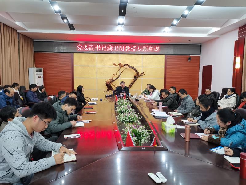 本网讯(化材学院 供稿)11月24日下午,党委副书记龚卫明参加并指导化学与材料工程学院教工党支部11月份主题党日活动,同时给全体党员上了一堂生动的党课。该院师生党员、党员发展对象共70多人聆听了专题党课。