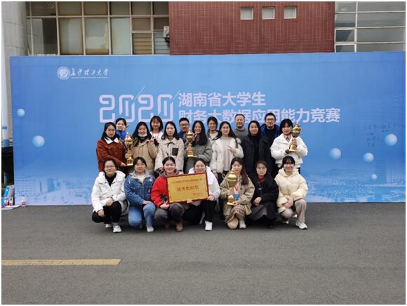 本网讯(通讯员 何鑫)12月27日,第三届湖南省大学生财务大数据应用能力竞赛在长沙理工大学圆满落幕,在本次竞赛中,由王真伟、邵东山、龚毓惠、何鑫四位老师指导的4支代表队共获得一等奖两项、二等奖两项的优异成绩,此外,我校在本次大赛中还获得了优秀组织奖,总成绩在本科同类院校中排名前列。在竞赛排位赛中,由黄滨、杨茜、李雨欣、唐士淋同学组成的二队,刘子瞻、涂缘、宁欣萍、何芳婷同学组成的三队分别以第全省第10名和17名的成绩获得赛事一等奖。