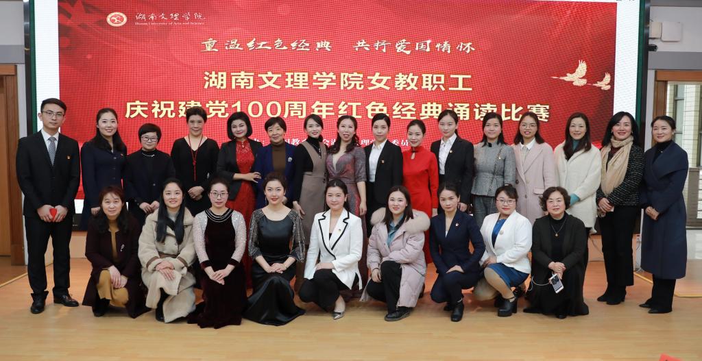 本网讯(记者刘银 摄影 徐晓松 田菊 杨梦萍)为庆祝党的100周年华诞,3月8日下午,由我校女职工委员会主办的“重温红色经典,共抒爱国情怀”湖南文理学院女教职工红色经典诵读大赛在图书馆报告厅举行。文法学院党总支书记夏子科、师范学院党总支书记李虹、党委巡查办公室副主任徐秋林、团委副书记胡婷、地旅学院党总支副书记郭婧应邀担任本次比赛评委。