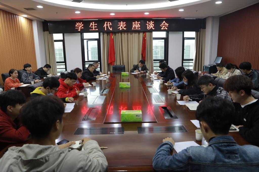 两个小时的座谈会上,各学院学生代表围绕课程教学、校园活动、学习环境、生活条件等问题依次发言,提出了许多意见和建议。如艺术学院陈波建议,落实图书馆预约制度,减少资源浪费。文法学院欧阳国强建议加强学校“第二课堂”建设,鼓励学生参加志愿服务等各类社会实践活动,全面提升学生的社会实践能力。
