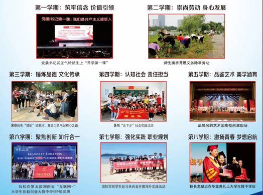 学校调动校内外各方面育人资源,长期深入探索“十大育人”一体化实践,构建全员、全过程、全方位协同育人大格局,打造“一中心(立德树人)、两转化(社会资源转化为育人资源、育人成果转化为服务社会成果)、四课堂(理论教学第一课堂、素质教育第二课堂、网络思政第三课堂、社会实践第四课堂)、八主题(依次为筑牢信念价值引领、崇尚劳动身心发展、锤炼品德文化传承、认知社会责任担当、品鉴艺术美学涵育、聚焦创新知行合一、强化实践职业规划、激扬青春梦想启航)”的思政教育新模式,全面提升学校整体育人水平。2019年,相关改革成果获省教学成果二等奖,2020年学校获批湖南省“三全育人”综合改革试点高校。