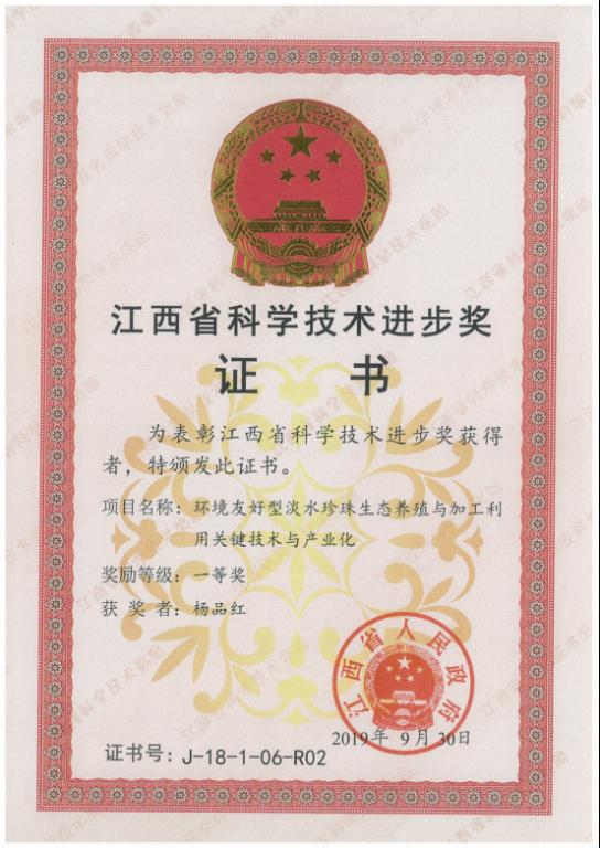 杨品红教授“环境友好型淡水珍珠生态养殖与加工利用关键技术与产业化”获江西省科学技术进步奖一等奖