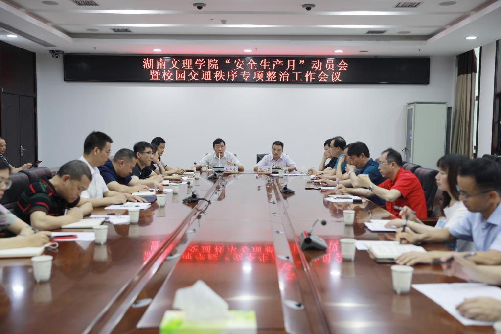 本网讯(通讯员 涂利)为积极响应全国“安全生产月”活动号召,落实安全责任,推动安全发展,落实学校党代会建设“平安文理”精神和党史学习教育“我为群众办实事”要求,6月2日上午,学校在逸夫楼A305会议室召开了“安全生产月”动员会暨校园交通秩序专项整治工作会议。党委副书记、校长刘宇文出席会议并讲话,学校相关部门主要负责人、各教学院党总支书记参加会议。会议由党委委员、教务处处长郭杰荣主持。