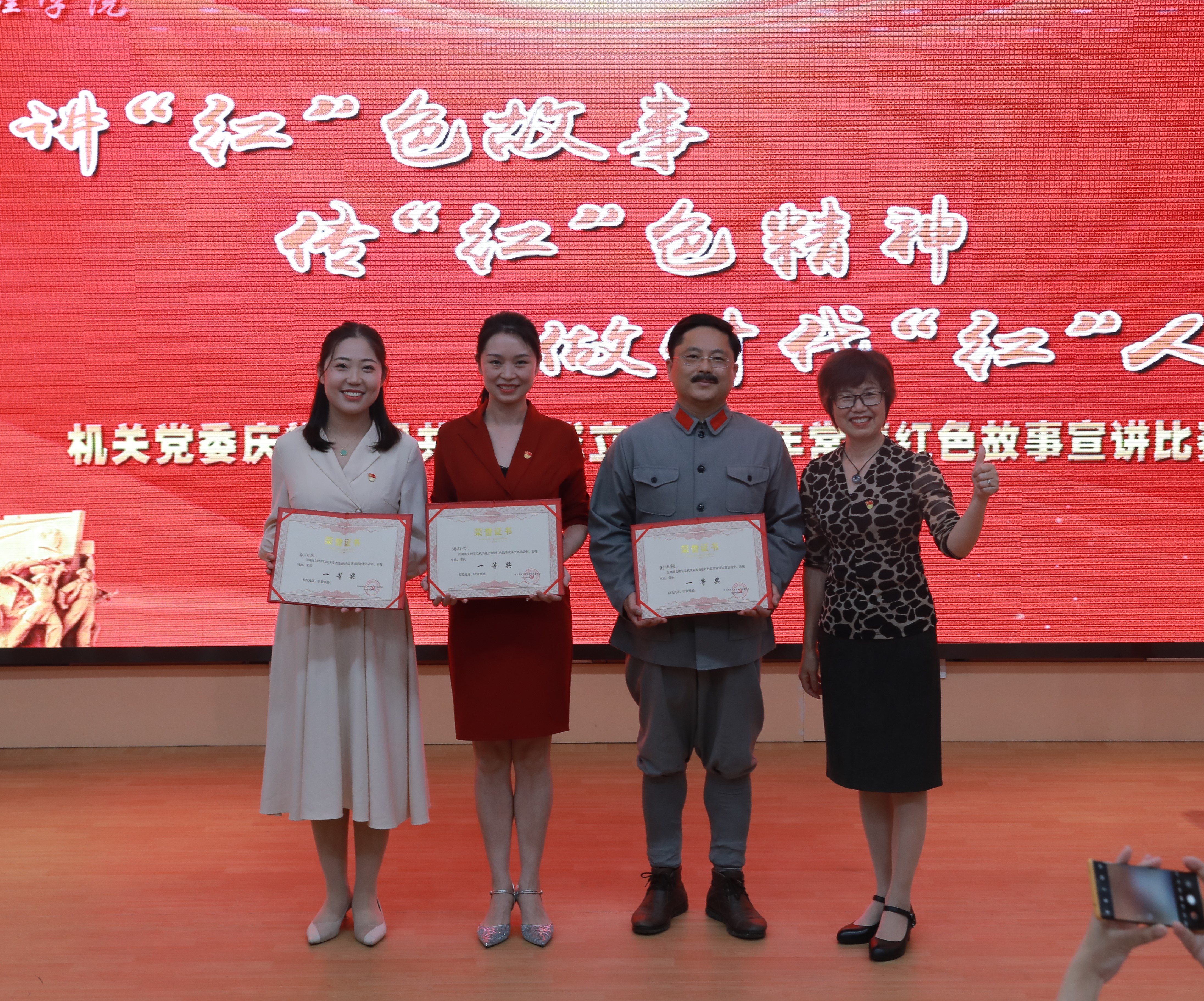 机关党委书记熊丽霞(右1)为一等奖获奖选手颁奖