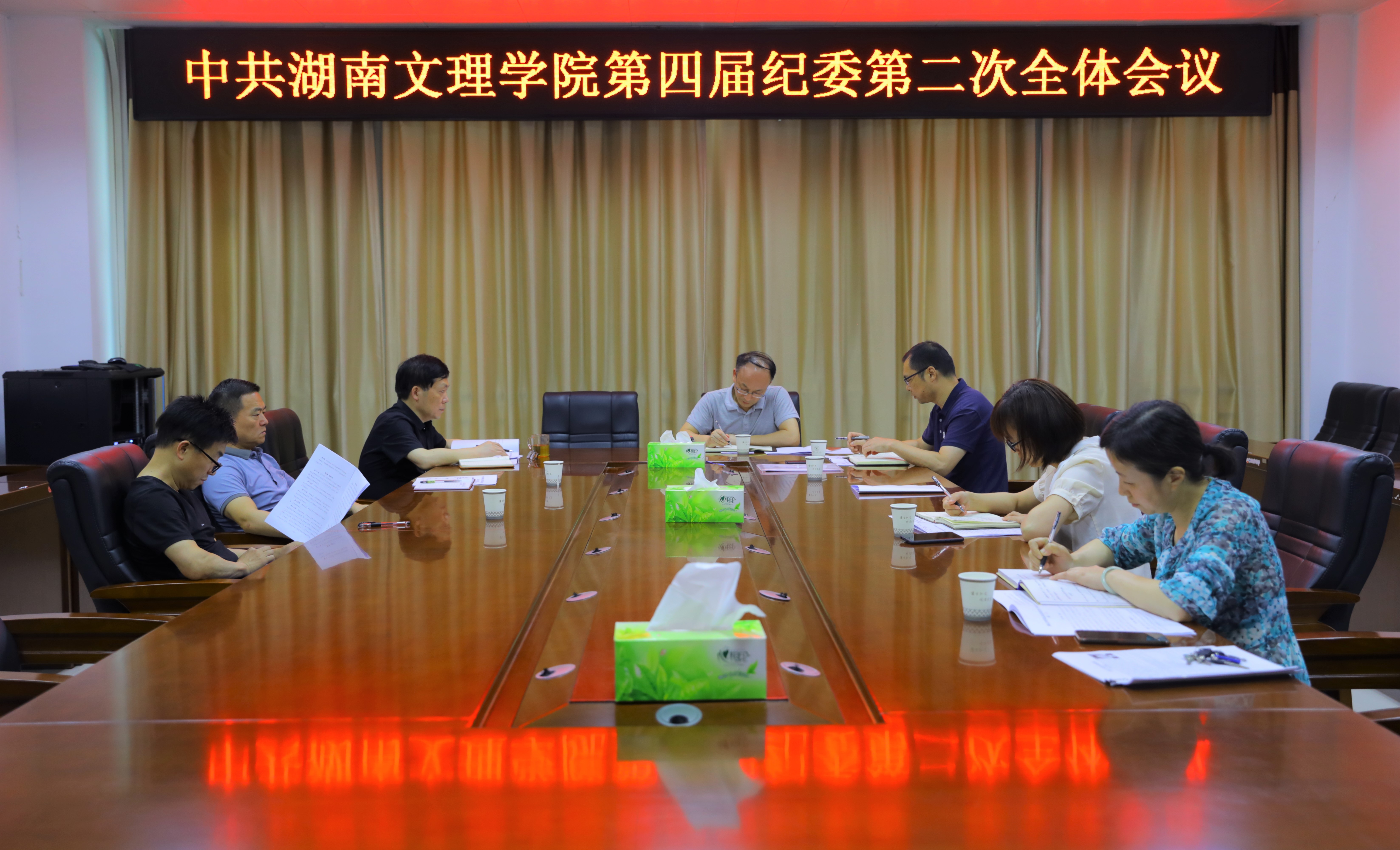本网讯(纪委 供稿)6月10日下午,纪委书记郭文超在逸夫楼B704主持召开湖南文理学院第四届纪委第二次全会,全体纪委委员参加会议。