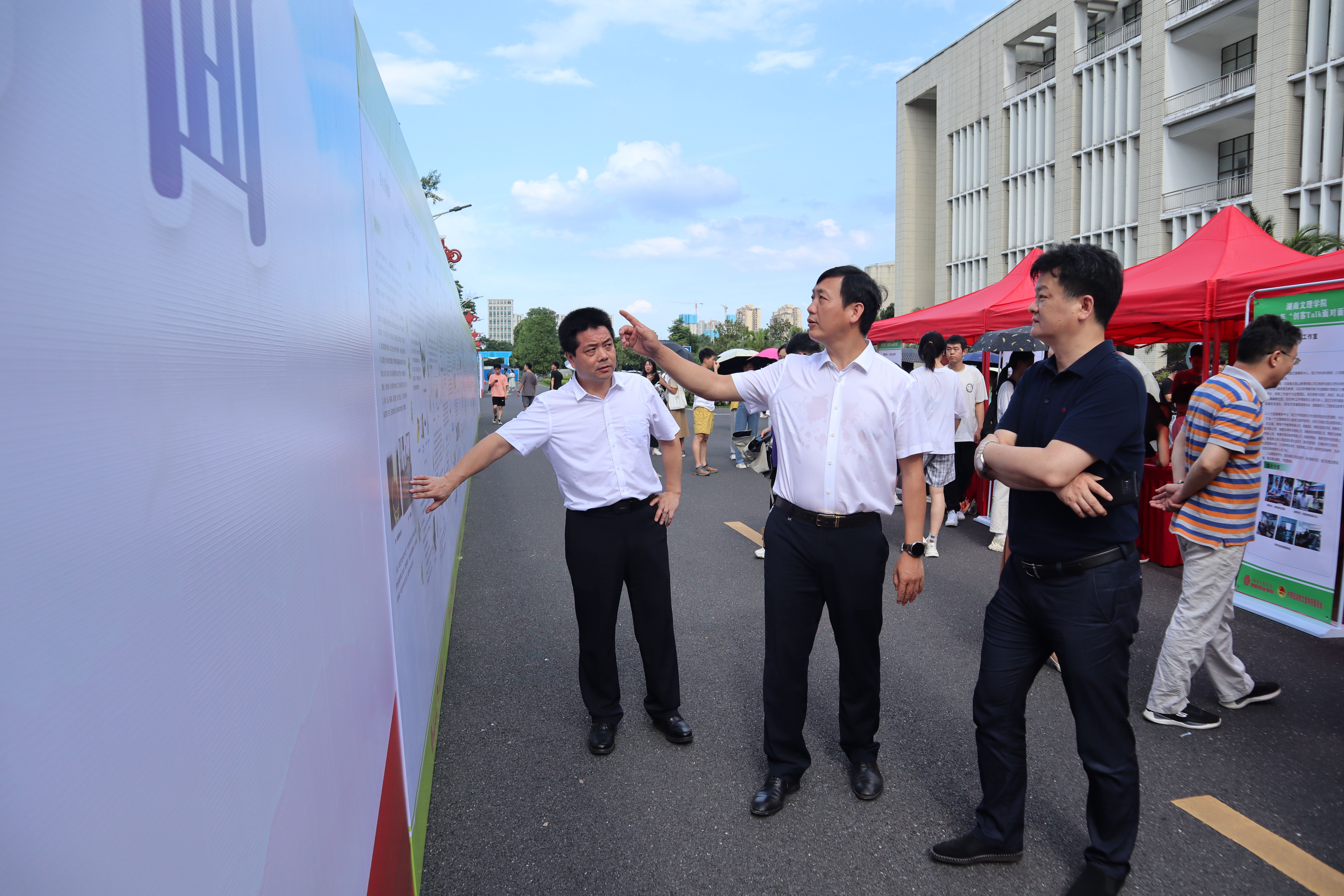 在创新创业项目/作品展区,刘宇文在展板前驻足观看,在展台前认真观看成果实物,与同学们进行深入交流,鼓励同学们掌握过硬本领、多出创新成果、更好造福社会。在志愿服务活动成果展区,刘宇文与各公益项目的学生负责人亲切交谈,了解了每个项目团队的成立时间及活动开展情况,勉励同学们结合自己的专业技能开展公益项目,深入洞察服务对象的真实需求、持之以恒开展工作,将公益项目真正做实,做出品牌、做出特色,体现文理学子的精神风貌与专业素养。刘宇文还就“如何将劳动教育与创新创业教育相结合”“五育并举、立德树人”等问题与现场师生进行了交流。
