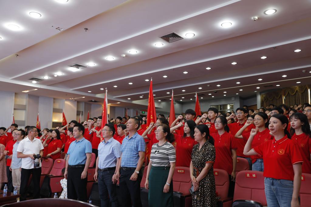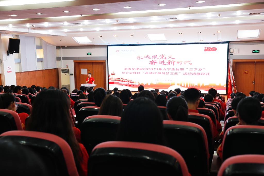 出征仪式上,团委副书记胡婷介绍了今年暑期“三下乡”社会实践活动的总体安排,“三下乡”实践团队学生代表唐悠、指导教师代表李瑾璇分别发言,所有实践队员进行了集体宣誓。
