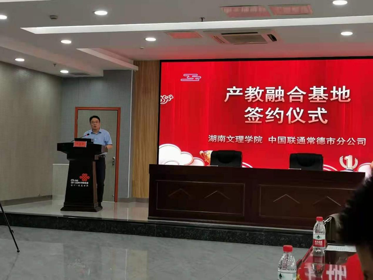 本网讯(通讯员 杨民生)7月9日上午,湖南文理学院与中国联通常德市分公司“产教融合基地”校企人才战略合作协议签约暨实训基地挂牌仪式在常德联通办公楼举行。常德联通党委书记、总经理熊杰毅及相关部门负责人,我校副校长肖小勇,计算机与电气工程学院党总支书记张奋、院长李建奇,教务处相关负责人及学院部分教师参加仪式。