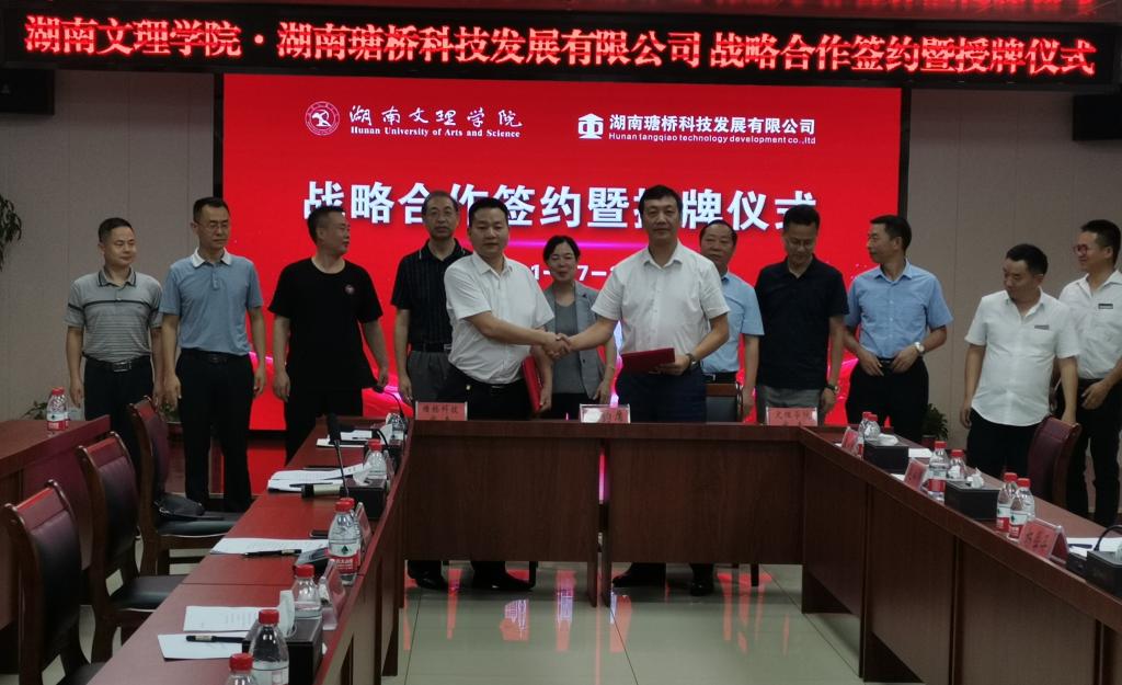 本网讯(通讯员 罗丛强 )校企合作促发展,产教融合赢未来。7月27日,湖南文理学院与湖南瑭桥科技发展有限公司战略合作签约暨授牌仪式在常德高新区举行。我校党委副书记、校长刘宇文,常德市科技局局长马慧,常德高新区党工委书记杨学平,湖南瑭桥科技发展有限公司董事长官昌友、我校生命与环境科学学院院长杨品红等出席仪式。