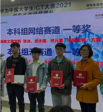 本网讯(通讯员 方霞)11月23至24日,第六届华为中国大学生ICT(Information Communications Technology)大赛实践赛湖南省决赛顺利举办。我校计电学院学子张冰、资永煌、林元豪从63所高校4500多名学生中脱颖而出闯进决赛,并获得本科组网络赛道第一名的好成绩,这支队伍将代表湖南省出战全国赛。
