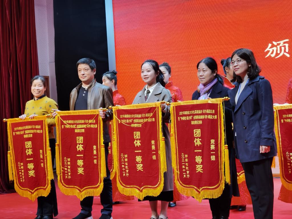 本网讯(通讯员 左艳芳)11月27日至28日,湖南省大学生英语演讲·写作·阅读比赛暨“外研社·国才杯”全国英语演讲·写作·阅读大赛湖南赛区复赛在湖南工业大学举行。我校学生代表队以湖南省第二名的优异成绩荣获团体一等奖,创历史最好成绩。林家荣、孙逸飞荣获英语演讲组个人一等奖,蒋杭霏荣获个人二等奖;禹善雄、曾晴、刘婕荣获写作组个人一等奖;李卓仁、徐培焱获阅读组个人一等奖,陈美玲获阅读组个人二等奖。禹善雄将代表湖南省参加全国大学生英语写作竞赛。