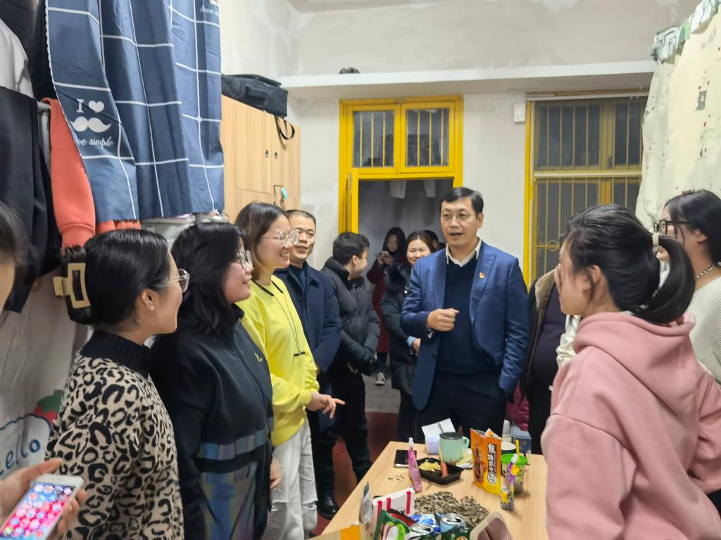 在师范学院学生宿舍,刘宇文仔细询问了学生住宿遇到的困难和问题,查看宿舍设施和热水供应情况,要求相关职能部门要听取学生意见,坚决做到立行整改。正值期末复习备考阶段,刘宇文与同学们亲切交流,详细了解大家的生活、学习以及备考情况,并向同学们致以节日的问候。在走访过程中,刘宇文仔细排查各寝室的安全隐患,反复叮嘱学生要时刻保持安全意识,特别是在寒潮来袭的情况下,一定要注意用电安全,注意御寒保暖,确保同学们生命财产安全。(一审 易姣 二审 杨静 三审 袁勇军)