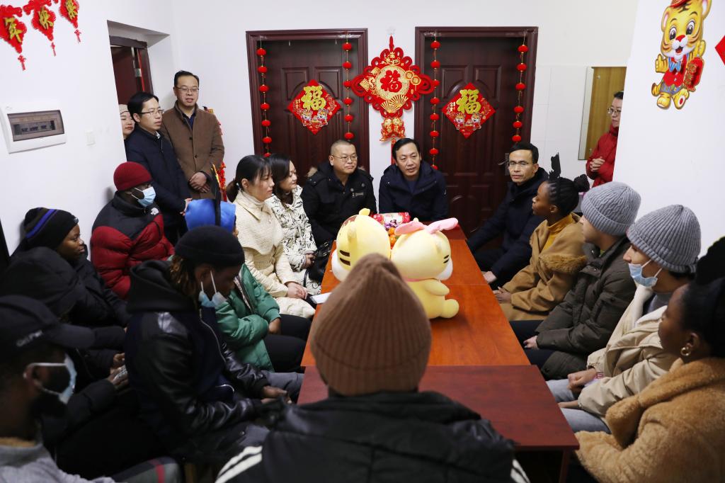 刘宇文来到留学生公寓,与来自古巴、利比里亚、津巴布韦、尼日利亚、坦桑尼亚、也门等国家11名留校留学生面对面进行交流,叮嘱同学们要注意防疫工作和保暖防寒,并为大家送上“压岁包”。对于留学生们都能听懂中文,刘宇文感到很欣慰。他指出,寒假期间,学校相关工作人员要加强对留学生们的关怀,同学们遇到任何难题都可以及时向老师反映。同时,也希望同学们充分利用这次在中国过春节的机会,好好地感受一下中国传统节日的浓厚氛围,加深对中国文化的了解,过一个欢乐吉祥的中国年。