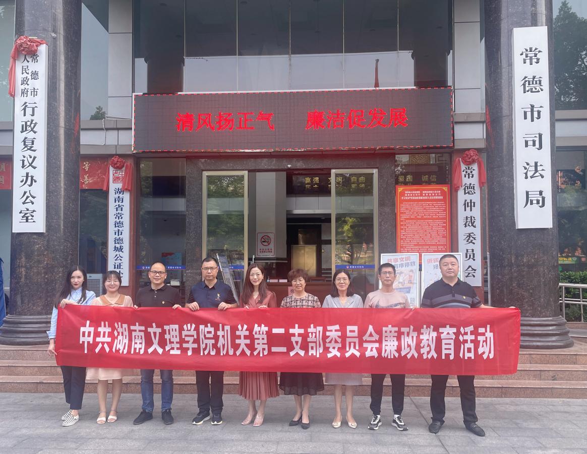 本网讯(通讯员 涂石)9月30日上午,学校机关党委第二支部全体党员赴常德市“清廉机关”建设示范单位——常德市司法局开展廉政教育活动。