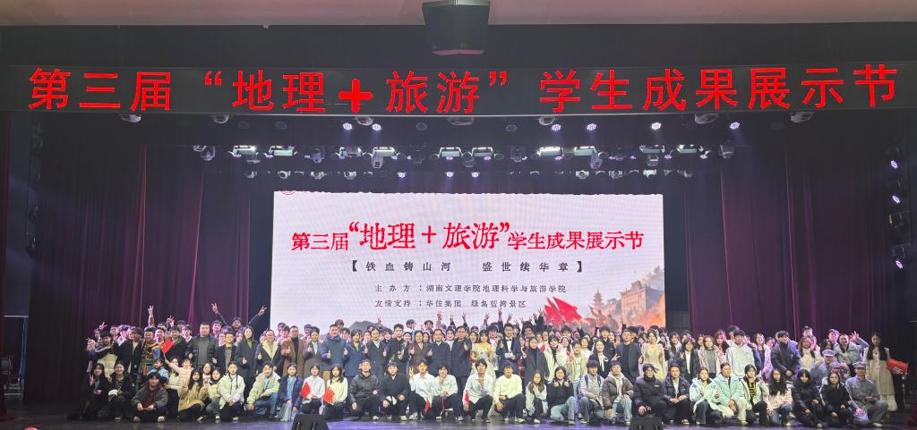 本网讯(地旅学院 供稿)近日,地理科学与旅游学院第三届“地理+旅游”学生成果展示节在艺术中心举行。活动以“铁血铸山河,盛世续华章”为主题,诠释了“经纬”专业之能与“红途”信仰之力的同频共振。在华住集团、绿岛蓝湾景区的友情支持下,活动集中展现了学院在“经纬红途”党建品牌引领下,推动党建与专业实践深度融合的育人成效。