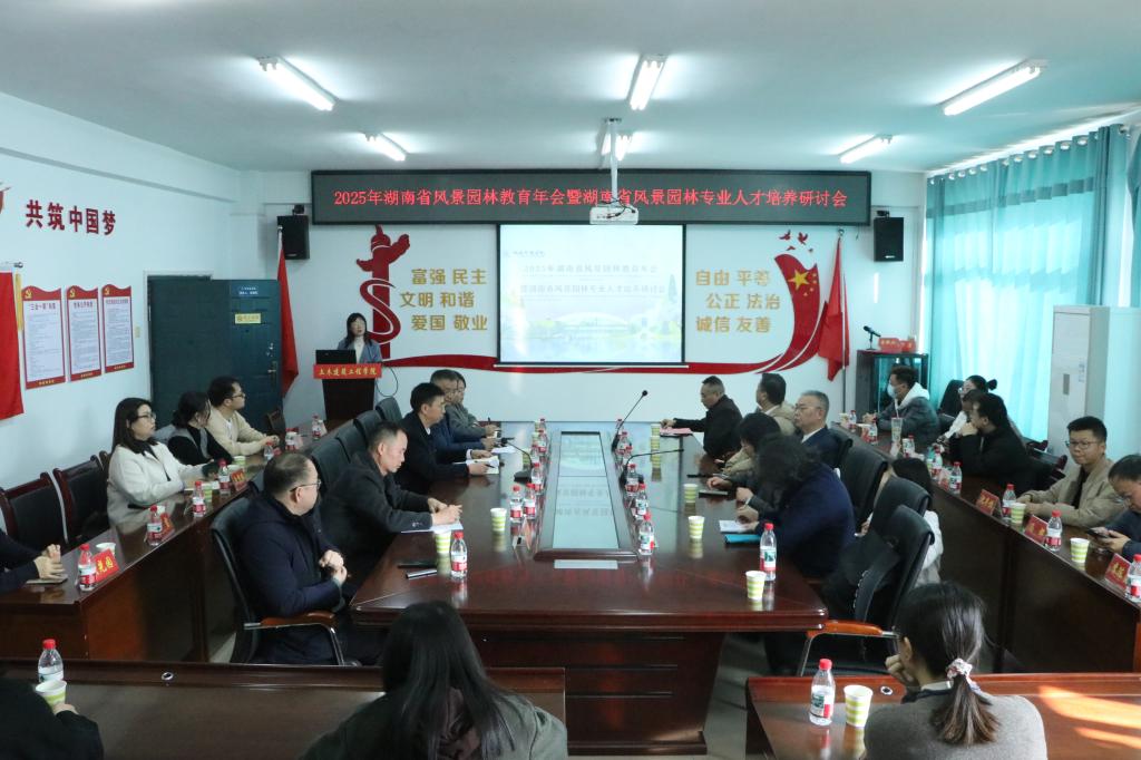 本网讯(文图 潘鸿烨)12月27日,由湖南省风景园林学会教育工作委员会主办、我校承办的2025年湖南省风景园林教育年会暨湖南省风景园林专业人才培养研讨会在我校凌云楼A318举行。会议邀请了行业知名专家、省内各高校风景园林专业负责人及骨干教师齐聚一堂,围绕新时代风景园林教育的发展与改革展开深入研讨。