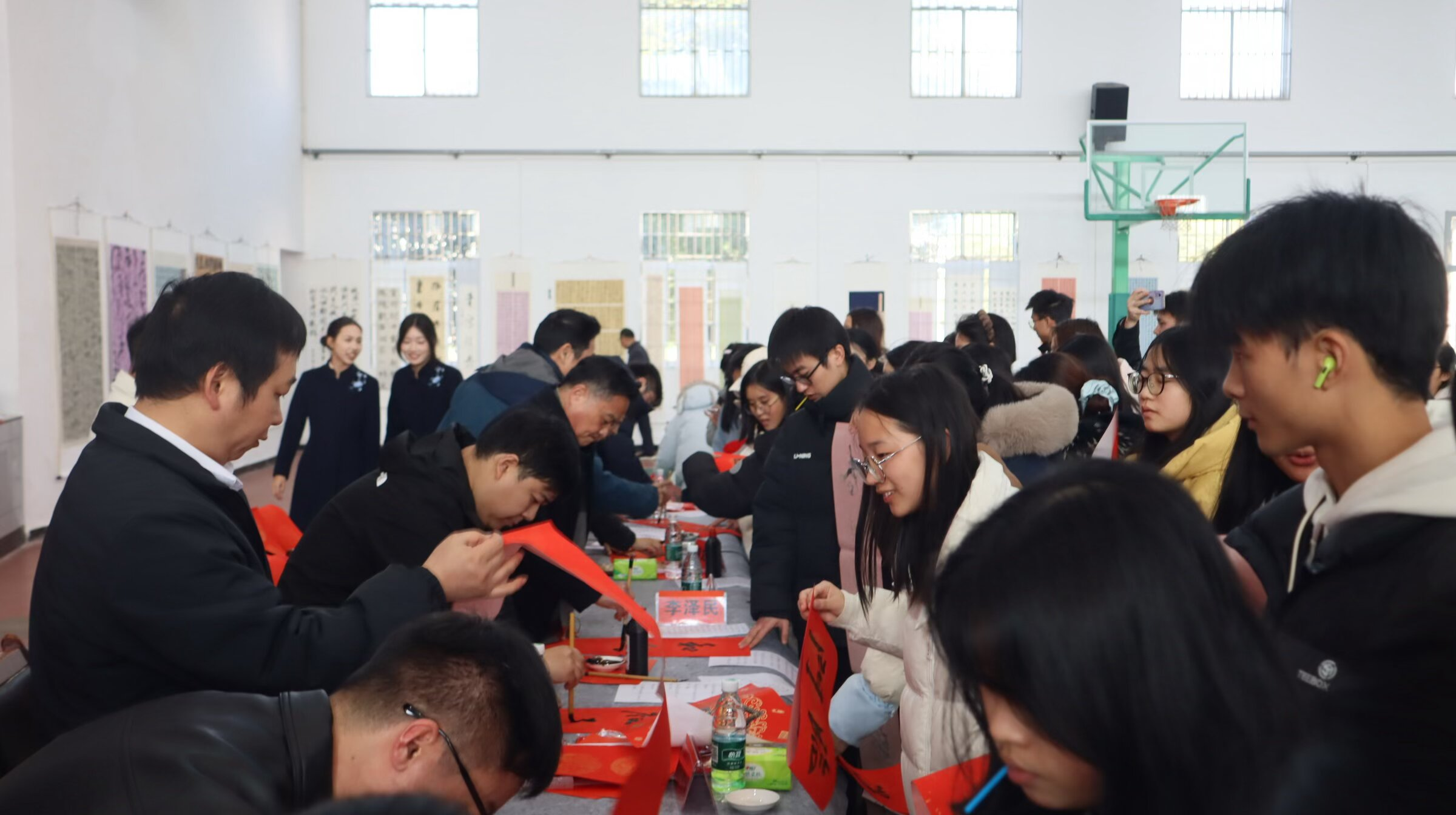 常德市书法家协会主席李泽民带领青德明、王政清、张曦微、符精华、胡文钟、朱海、梁飞熊、郑栋辉、孙旭弘、梁丝伦、刘昕等十余位书法专家现场挥毫,创作春联和“福”字并免费赠予师生。书法专家们还与学生们亲切交流,耐心指导执笔、运笔等技法,助力青年学子提升书法修养。活动现场洋溢着欢乐祥和的节日气氛,获得春联和“福”字的学生们积极参与“新春祈福墙”留言、“笔墨印象”打卡拍照等互动环节,在增添活动趣味性的同时,也进一步扩大了活动影响力,让传统文化与新春暖意在校园中广泛传递。