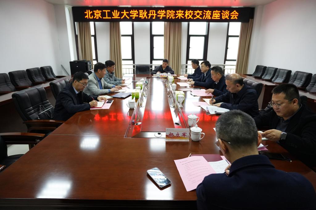 本网讯(文字 文瑛 图片 贺薪羽)3月25日上午,北京工业大学耿丹学院常务副校长吴涛率转设办公室主任雍进辉及党政办负责人一行来我校交流。座谈会在逸夫楼B704会议室举行,我校副校长肖小勇致辞,常德学院临时党委负责人欧成、副校长智凯强、芙蓉学院领导班子成员及相关职能部门负责人参加会议,会议由芙蓉学院院长王兴柱主持。