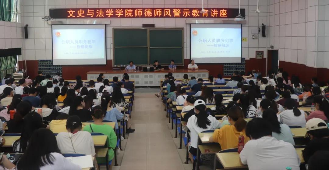 本网讯(通讯员 李云安)9月16日下午,文史与法学学院邀请武陵区人民检察院第二检察部主任黄思敏在第三教学楼D301为师生作师德师风建设警示教育讲座。