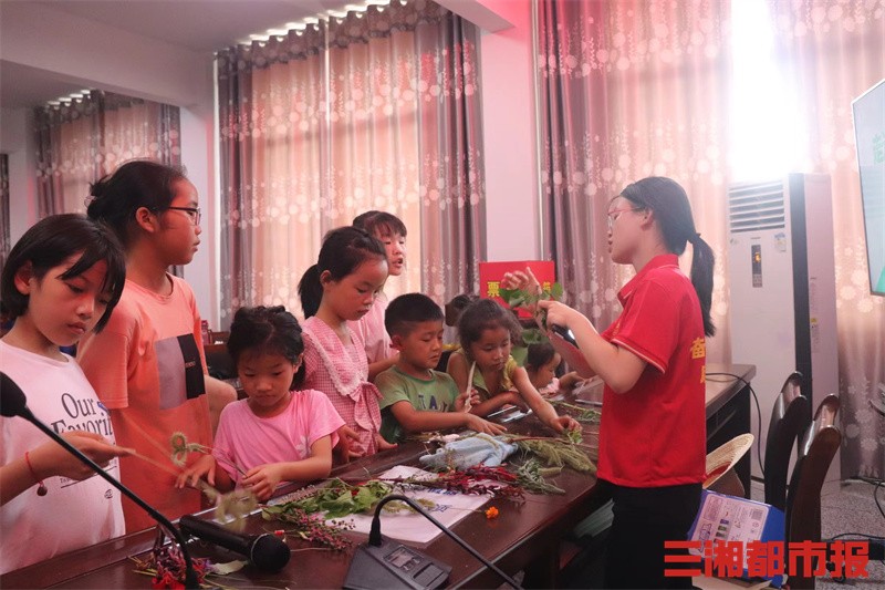 三湘都市报8月10日讯(通讯员 魏后乐 黄倩晖 全媒体记者 刘镇东 实习生 关子彤)每一个生命都渺小而伟大,一群孩子们惊讶着植物的种类繁多和功能各异:“没想到这些植物的名字可以这么美!更没想到小小的绿叶能给人类带来那么多好处!”近日,湖南文理学院绿色卫士大队的志愿者们在常德市汉寿县龙潭桥镇相公山村开展为期十天的“七彩假期”社会实践活动。