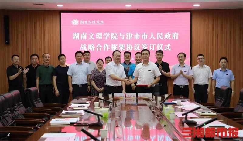 三湘都市报9月8日讯(通讯员 易姣 崔琴 全媒体记者 刘镇东)校地合作再谱新篇!9月7日下午,湖南文理学院与津市市人民政府战略合作框架协议签订仪式在学校举行。