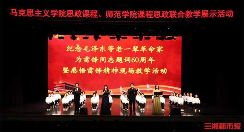 三湘都市报3月6日讯(通讯员 汤妮 吴洋婷 全媒体记者 刘镇东)“诗歌朗诵会、舞台情景剧、音乐演唱会、经典故事会、图片事迹展,这一堂雷锋精神现场教学课,真的让人耳目一新、印象深刻、受益匪浅。”湖南文理学院马克思主义学院陈佳丽同学在艺术中心观看完现场教学后深感震撼。