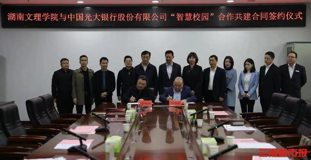 三湘都市报4月7日讯(通讯员 王懋榕 尚如晶 全媒体记者 刘镇东)校银精诚合作,共建文理特色“智慧校园”。4月6日,湖南文理学院与中国光大银行有限公司“智慧校园”合作共建签约仪式在学校举行。