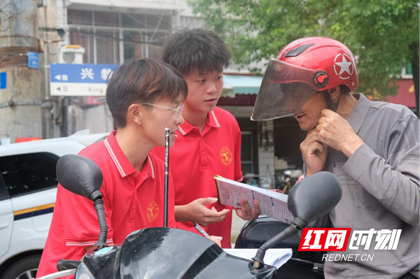 红网时刻常德7月10日讯(通讯员 熊苑伶 黎程)“大叔,咱们这个头盔得带好,安全意识很足呀,骑摩托车是‘肉包铁’,这个《根治顽瘴痼疾 共建平安湖南》宣传册给您,回去以后可以好好学习一下……”前不久,在湖南省桃源县佘家坪镇集镇片区,湖南文理学院体育学院的“三下乡”服务队正在进行交通劝导志愿服务活动。志愿者们一边介绍文明出行的益处,一边对不文明的出行行为进行劝导并登记,现场道路交通秩序井然有序。